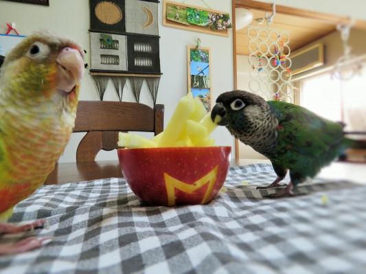 お写真だけど「マック林檎ポテト」食べてる時は、クーちゃんとリリィちゃんはケンカしないみたいですね〜仲良しが一番ww