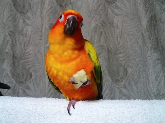 ナナイロメキシコインコのもも(3歳・おそらく男の子)と、