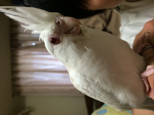 生後二ヶ月オカメインコ、涙目…?