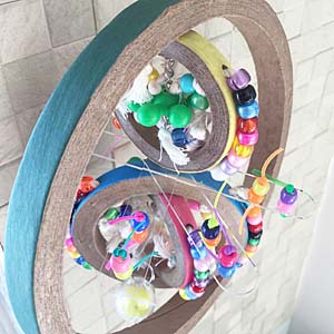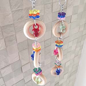 ベーグル好きの鳥さんにもビーズ好きの鳥さんにも大満足してもらえるおもちゃです。