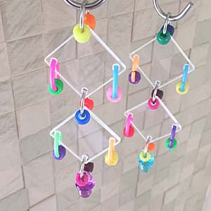 ボルト&ナットとプラ鈴とビーズを組み合わせて、ジャラジャラと遊べるようにしました。