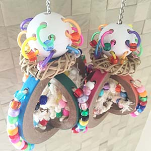※ 鳥さんのおうちのおもちゃは手づくりのため量産できません。再販できないおもちゃも多々あります。愛鳥さんのお気に入りおもちゃがありましたら、在庫のあるうちにご注文ください。