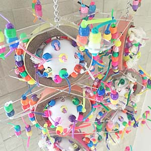 これだけのビーズがついたおもちゃ、飛ばし屋の鳥さんにはワクワクでたまらないはずです^^