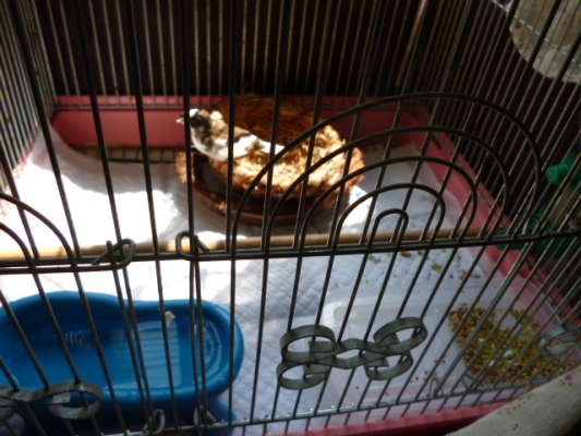 早速チッチのかごをバリヤフリーにしてみました。