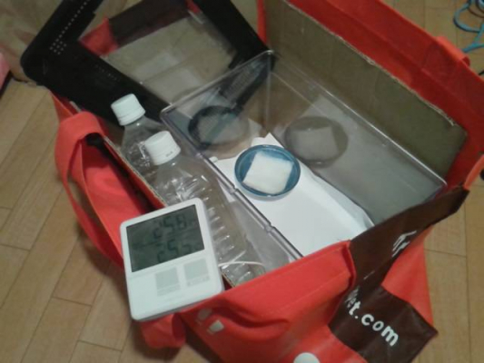 写真は冬場にプラケースで移動するときに使っている、我が家の様子ですが、