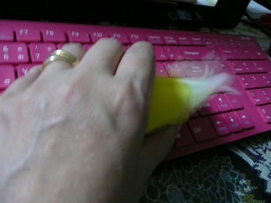 前の子はチョロチョロ水で洗面器にダイブでしたが・・だからなんだかお風呂に入っていないインコ臭します(^_^A