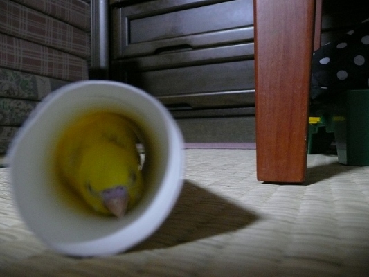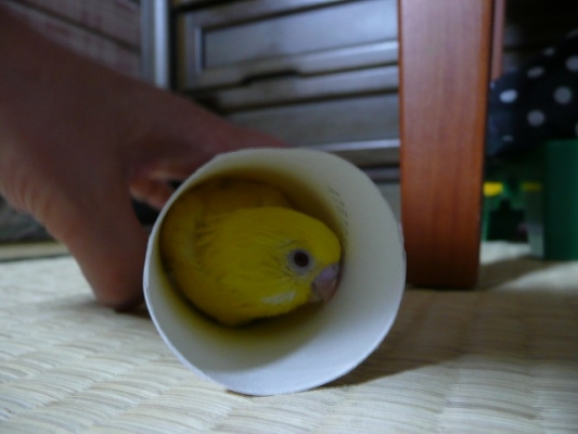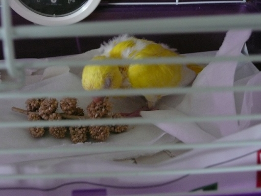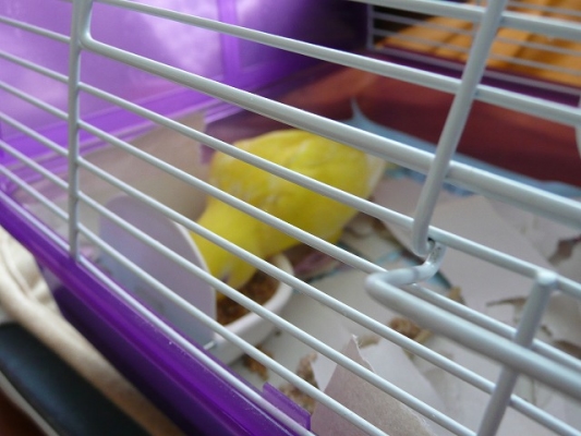 ピーピー泣いていましたがゲージに戻すと小鳥のエサを食べてましたww