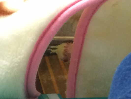 クチバシにも身体にも内出血。足も変形…。
