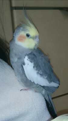 仲良しのオカメ♂が飛び去った後、金切り声をあげていました。