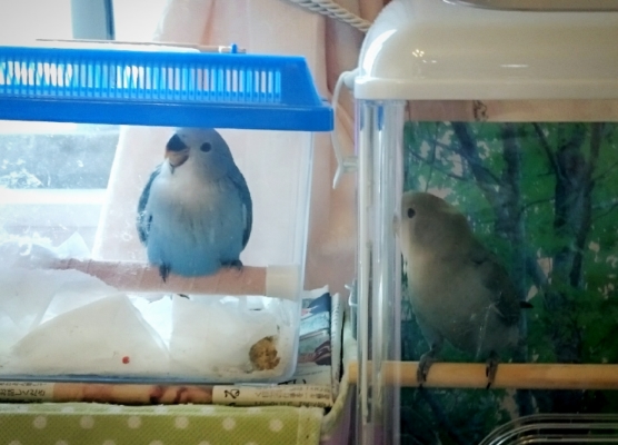 それぞれのケージ内へ戻すと、お互いが近い方に寄っていき、ケージプラごしに寄り添って囀ずる(主に1羽目がよく鳴く「ピッピリッ」と高めの機嫌良さそう?)2羽目はあまり鳴かないが希に2羽で囀り合う、その寄り添ったまま?の位置で寝る、とゆう感じで、1羽目がしていた私へのストーキング行為はほぼなくなりました。
