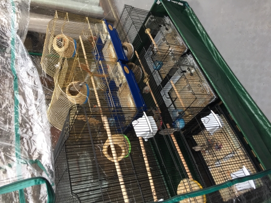 小学生の頃飼っていた十姉妹とインコは、籠数で言えば2籠だったので子供部屋でも管理出来たのですが、現在の我が家は、キンカ3ペアとその雛(若鳥)籠と、十姉妹籠と…6籠で、かなり場所を取ります。