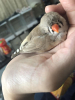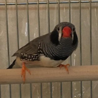 体長10-11cm 雌雄で模様が違い、オスは頬がオレンジ色で、胸に特徴的な横縞模様の羽根を持つ。