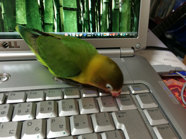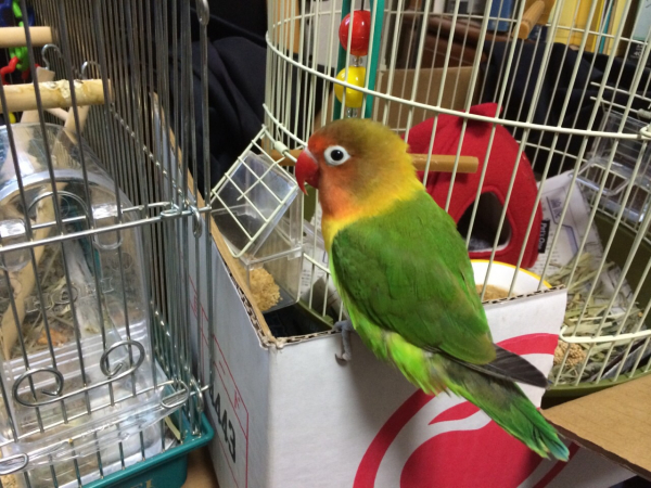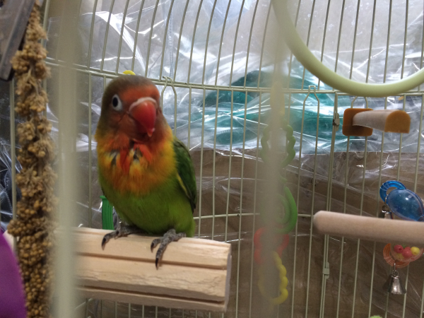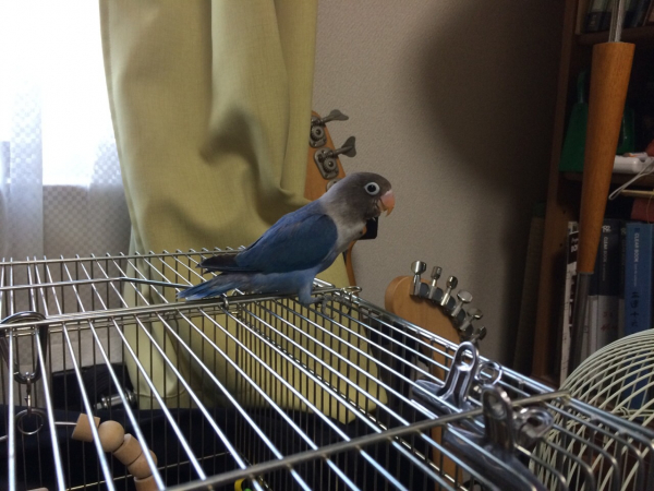 2羽のボタンインコ(ルリゴシ、ブルー)がいます。7か月と3か月なので、どちらも性別がよくわかりません。毎日奮闘中です。