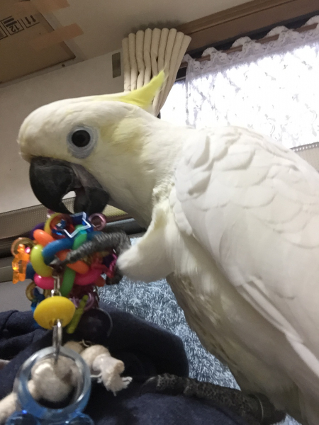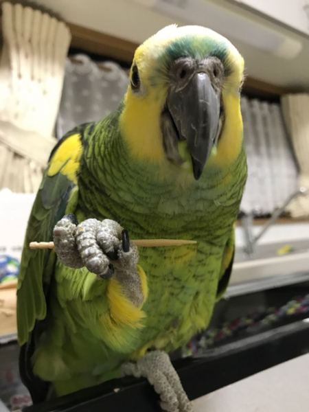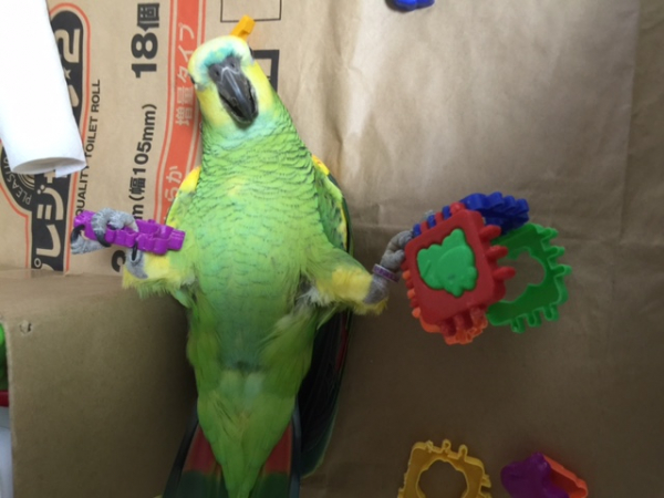 アオボウシの♂(アオちゃん)とコバタンの♀(コバちゃん) と暮らしています。