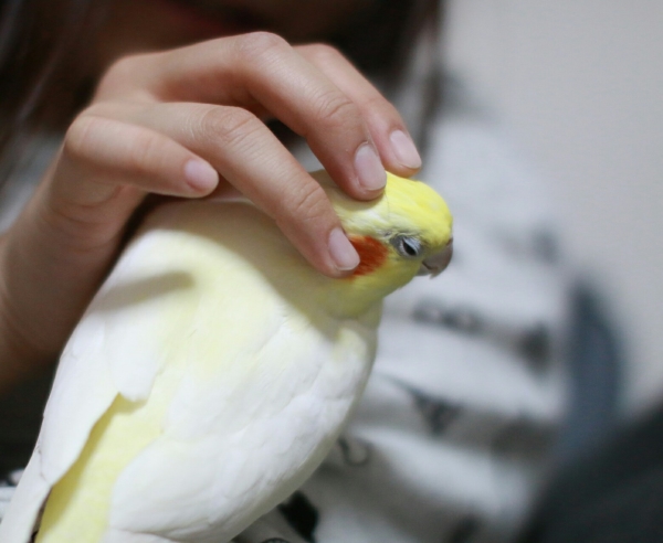 ちょっと人見知りな子ですが、主の髪の毛をはむはむしに来ます。