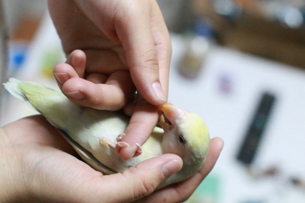 生後1ヶ月半のオカメインコ、こはるをお迎え