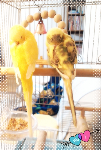 6ヶ月のルルと3才のオスのララというセキセイインコがいます(’−’。)