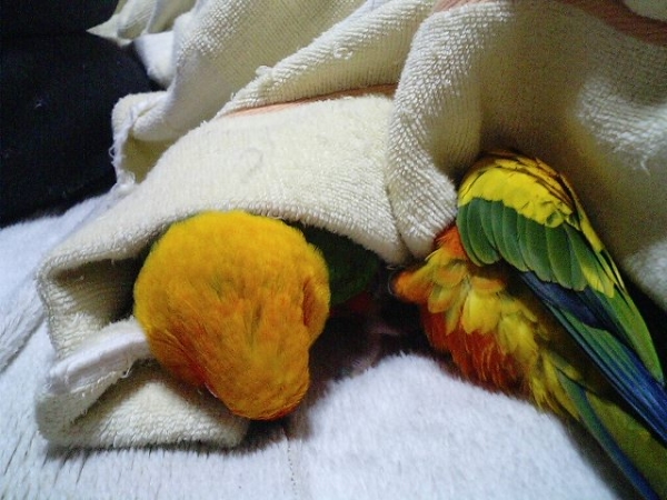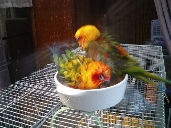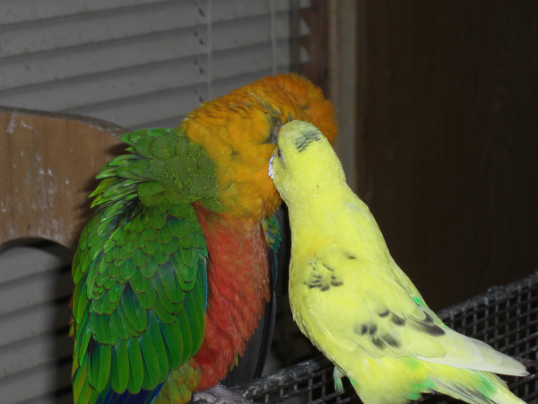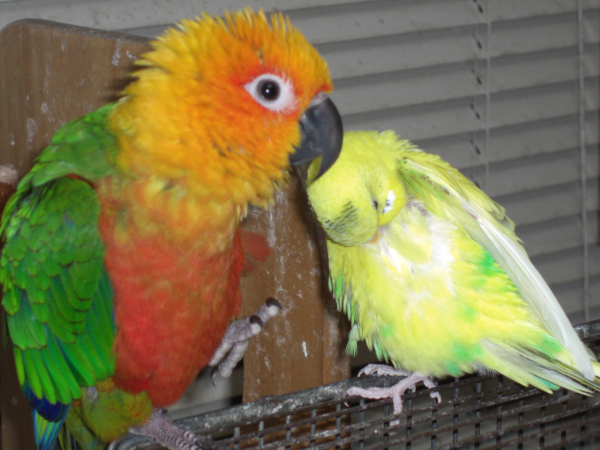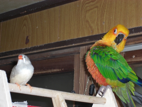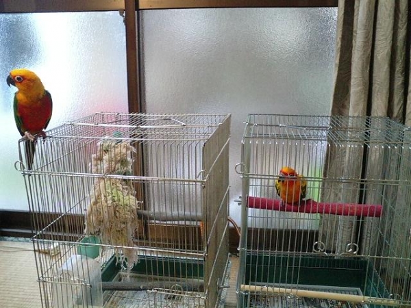 ナナイロメキシコインコを筆頭に、オカメ8羽、セキセイ7羽、キンカチョウ5羽と、毎日が癒しの日々です。H13・10・27コガネメキシコインコのビリーをお迎えしましたww