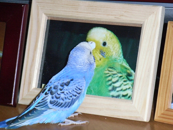• 我が家に来た当初は、いっしょに来たたんぽぽにラブラブだったすみれ。たんぽぽが突然死んでしまってからも遺影に話しかけています。