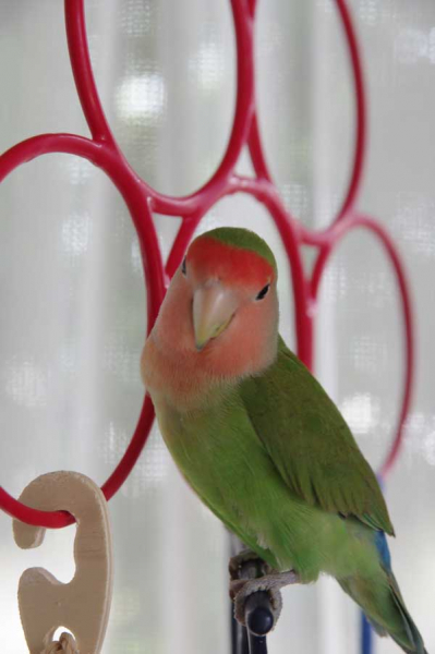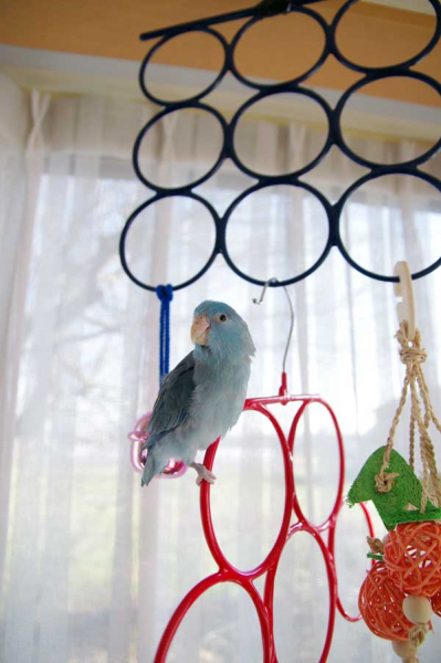 現在は、コザクラ−1羽、マメルリハ−1羽、アキクサ−2羽、ヒメウズラ−1羽の計5羽と生活しています。
