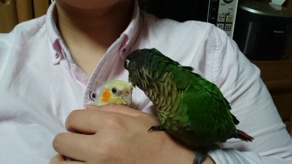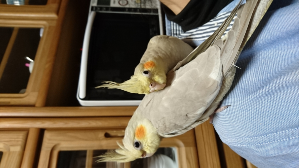 シナモンパール♂ シナモン♀の、おかめ夫婦を飼ってます。 初の産卵で卵も全部孵り、子育ても上手にしてくれました(^−^) 大事な、かわいい家族です!