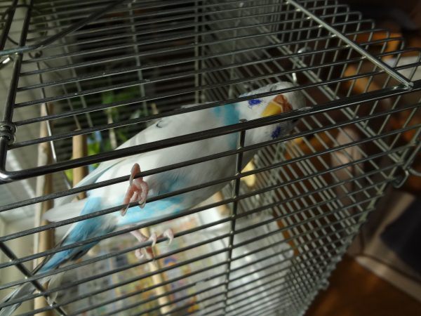 2015年6月より飼い始めたセキセイインコ(2015年5月産まれ) 白ハルクインの白ちゃん