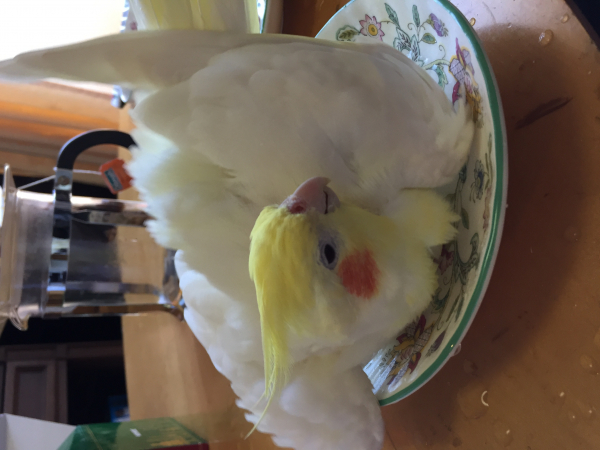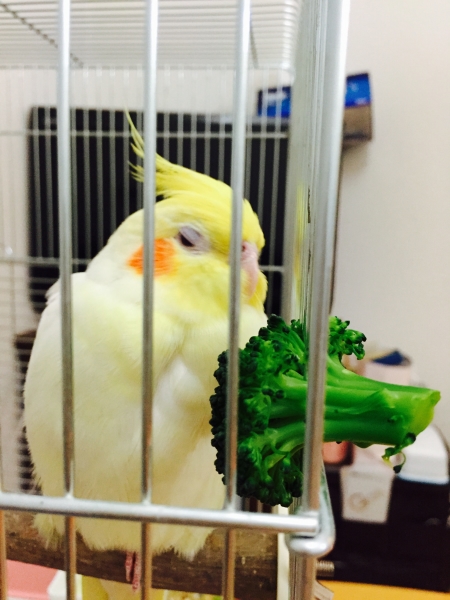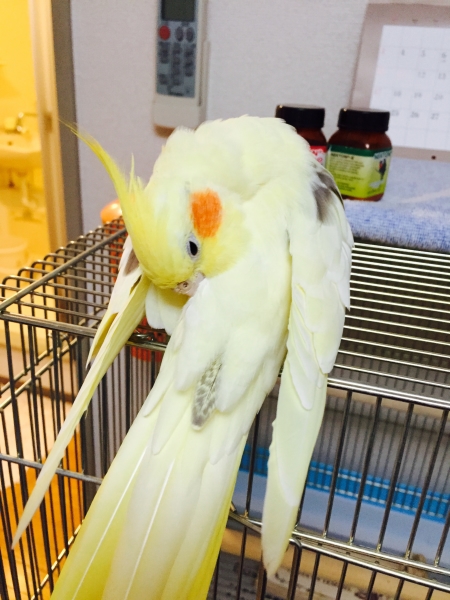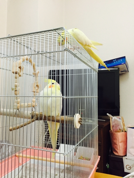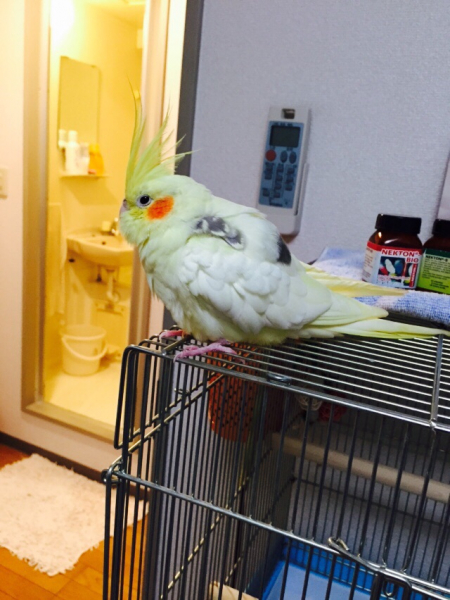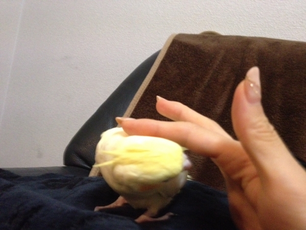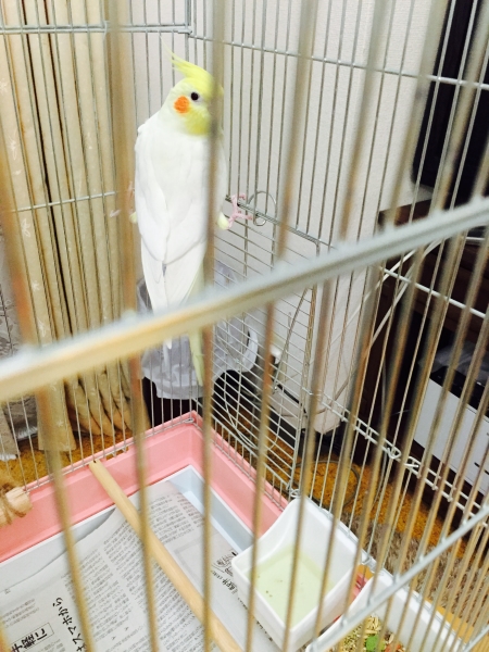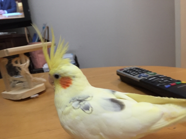 部屋の中でも、私に飛んで付いて来てくれ、一緒にいるとナデナデしてとせがむ甘えん坊。かといって、撫でる場所が少し違うと怒ります(^◇^;)