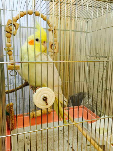 目が合うと、出して出してと言わんばかりにケージの中を左右に動いてアピールします(o^^o)