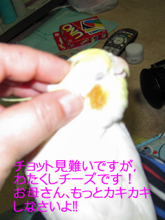 2011.02.25 23:49 いたち猫 はじめまして〜♪10ヶ月ということはチークと同じですね!動画も拝見しました〜2羽は仲良しなんですか?チークは威嚇されようがお構いなしでケージにお邪魔しようとするので他の鳥からはあんまり好かれてません(^^;チークはケージ越しだとカキカキさせてくれるのに、直接触られるのが嫌いで・・・ひどく噛むことはないので然程気にしてませんが、できれば矯正したいんですよね。。。チーズ君の噛み癖も治ると良いですね。いつでもお店に遊びに来て下さ〜い(*^0^*)b