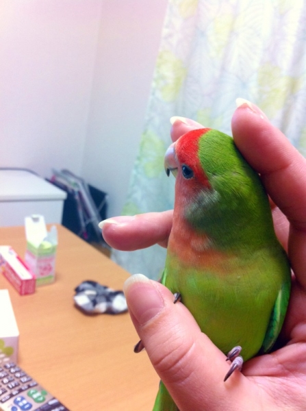 2012.02.03 22:53 よもぎ 今更ですが、明けましておめでとうございます。 久しぶりに写真アップしました! すっかり、大人になったよもぎ。すっかり懐いてくれて、人間のことが大好きな鳥さんに成長してくれました!カワイイ、カワイイよもぎですO(≧∇≦)O