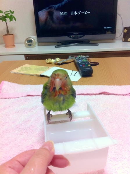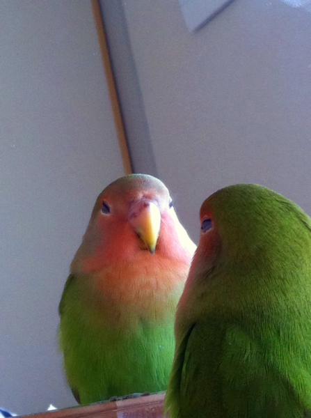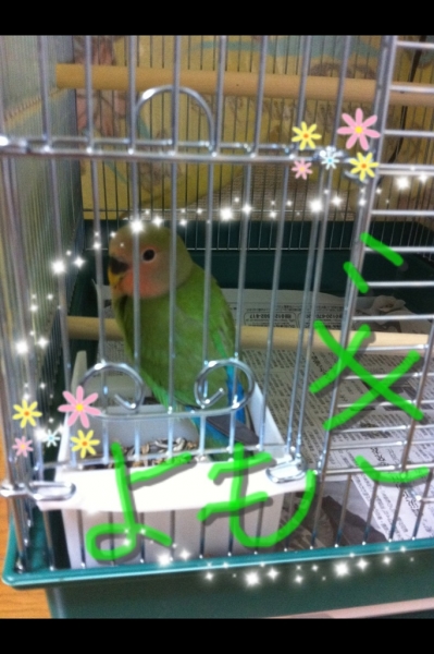 2012.02.04 10:21 すっちゃん メッセありがとう^^写真みたよー★よもちゃん、ずいぶん馴れたよねー^^うちより鳥さんとLOVELOVEじゃね???笑 うちの子たちは(たぶん)♂同士で発情しあってます・・・・^^; 発情ばっかしてるのも鳥さん達の健康上良くないらしいね??うちも別々のケージにしたほうがいいのか 考え中だよ。・・・・あまりにも激しくて・・・・二人の求愛行為が・・・・笑 1月6日撮影のは、ピーコとピースケの二人だよーー!鏡じゃないよん^^
