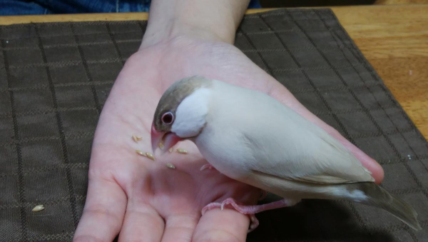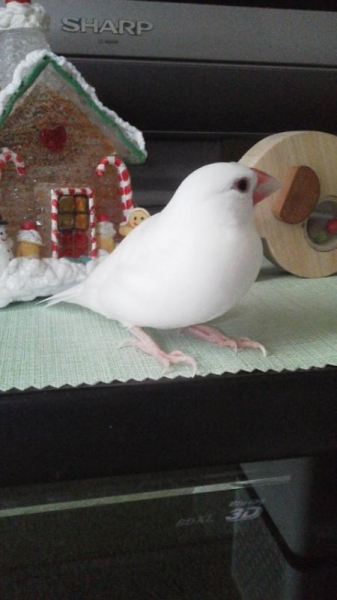 桜文鳥のぴーちゃん♀と白文鳥の白ぴー♀がいます。(トイプードルのココっち♂もいます)ほんと、文鳥って可愛いです!日々、癒されています。
