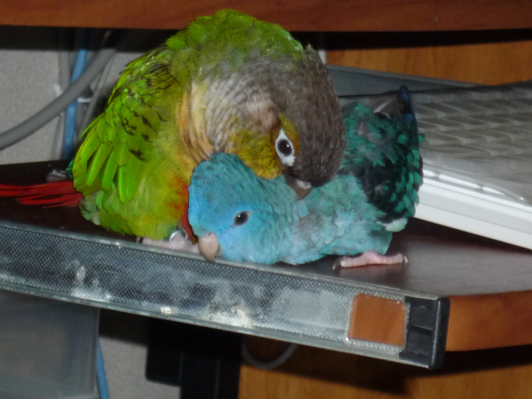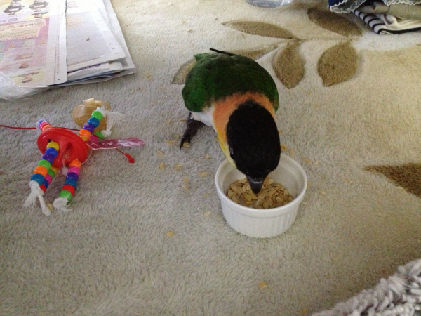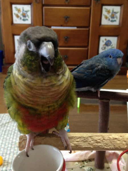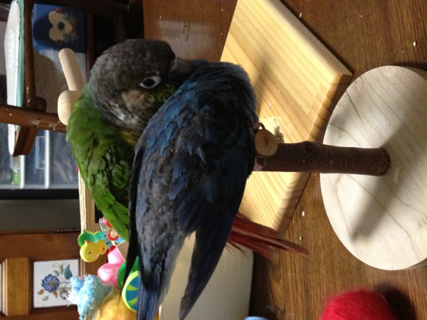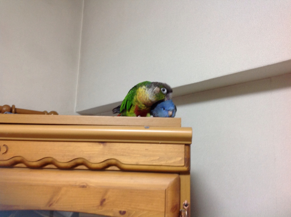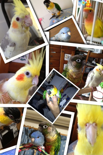 飼っているオカメ、サザナミ、ワキコガネイロウロコ、ズグロシロハラの4羽のインコと遊ぶのが楽しみです。新たに2012年8月17日からオカメのファローが家族に。2013年5月3日ズグロのタルト、5月12日錦華鳥夫婦も家族になりました。