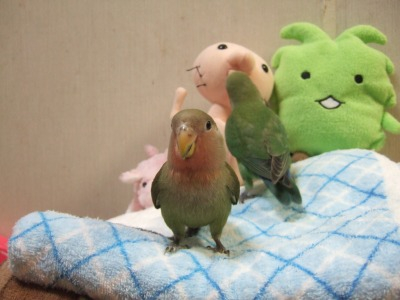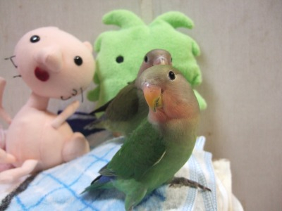 コザクラインコの「りんご」「みりん」「すだち」「きゃべつ」「ぱいん」と暮らしています♪ 仲良くしてください〜