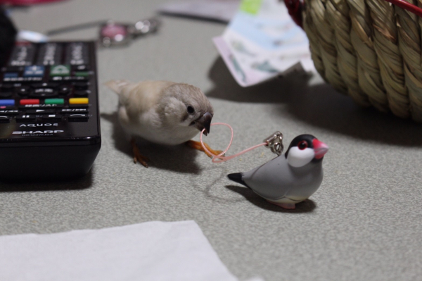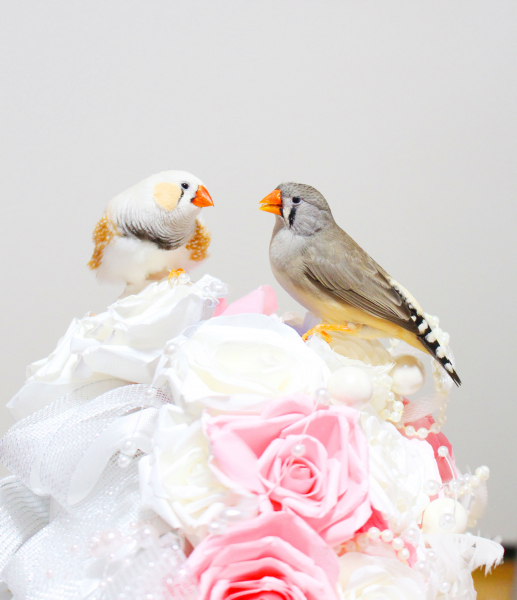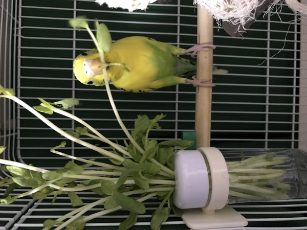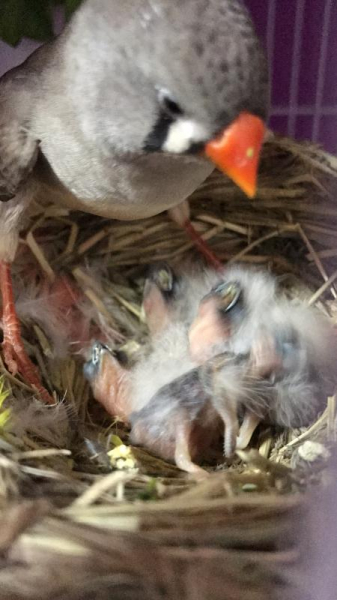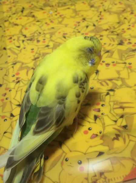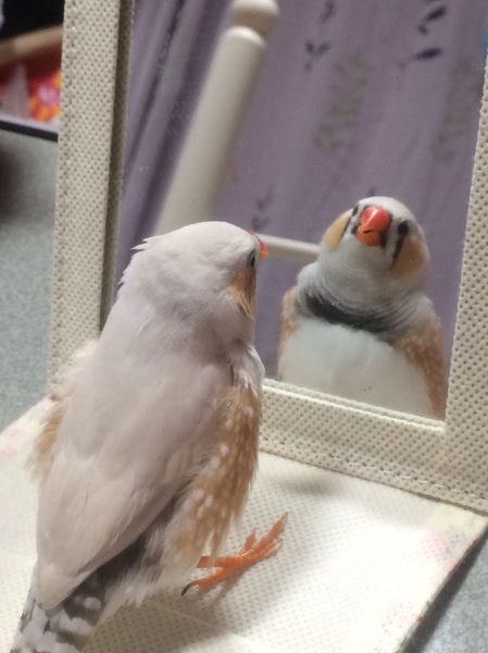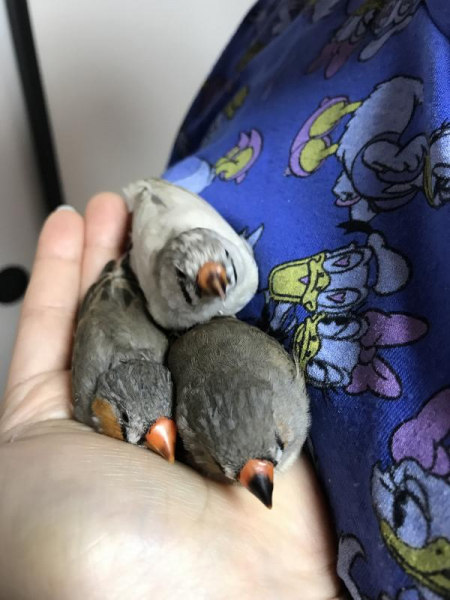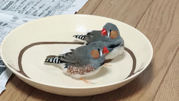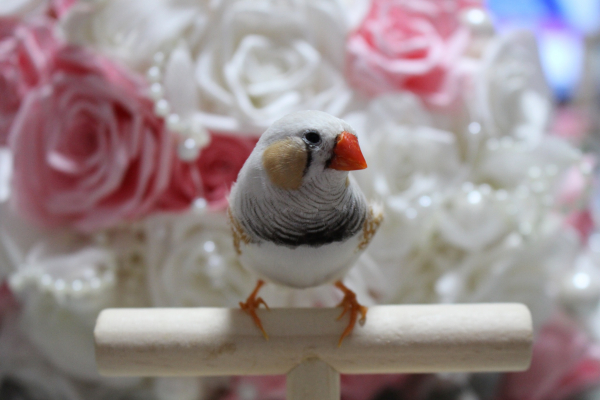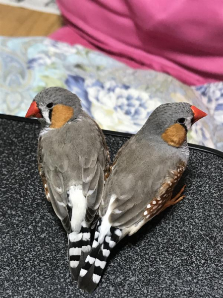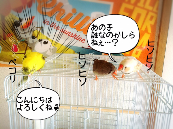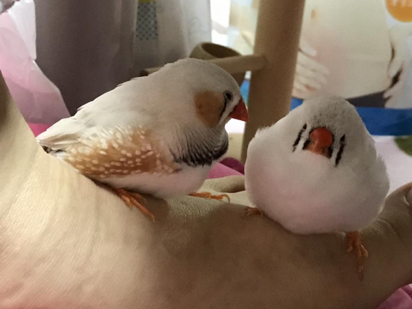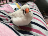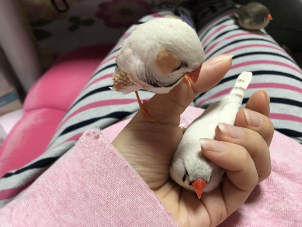 現在、キンカチョウ(CFW)の男の子・キンカチョウ(ノーマル)の女の子・コキンチョウ・アキクサインコ(ルビノー)・セキセイインコ(イエローハルクイン)の、5羽とワイワイ暮らしてます♪