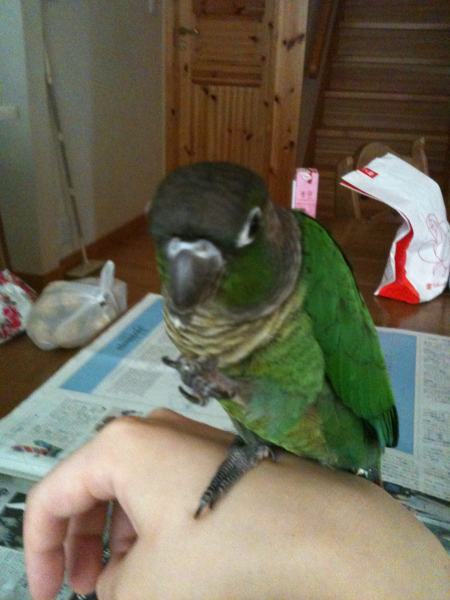 5月7日より我が家にホオミドリアカオウロコインコのジュニパーが仲間入りしました(#^.^#)