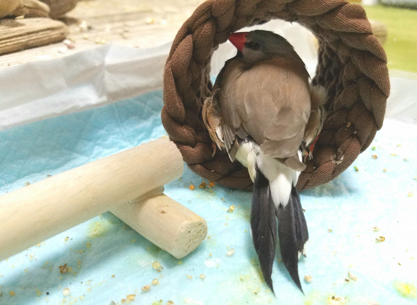 紅幸姉さんを真似てインコっぽい文鳥に育っている。
