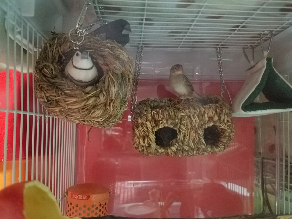 我が家の楓鳥はどちらももう亡くなってしまったのですが。。一羽は保護した子、もう一羽は購入した子でしたが、相性はよかったです。つぼ巣と巣材を入れるとすぐに巣作りを始め仲良く篭っていましたが、産卵にまでは至りませんでした。ですので、私も楓鳥の繁殖に関する特別なことはよくわからずで、お役に立てず申し訳ないです。