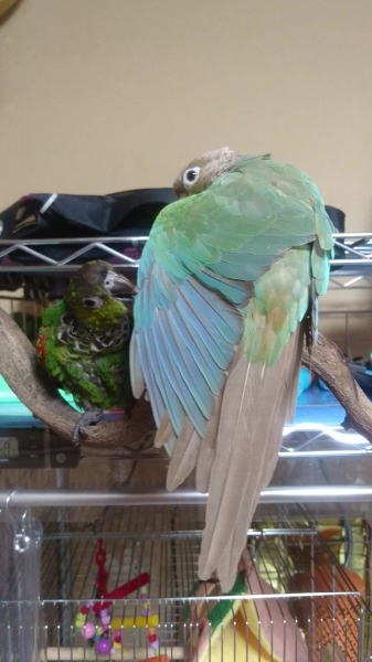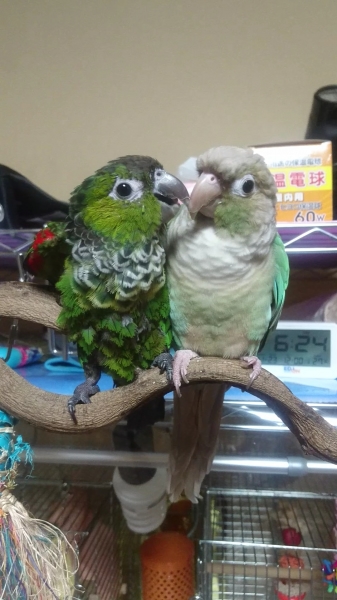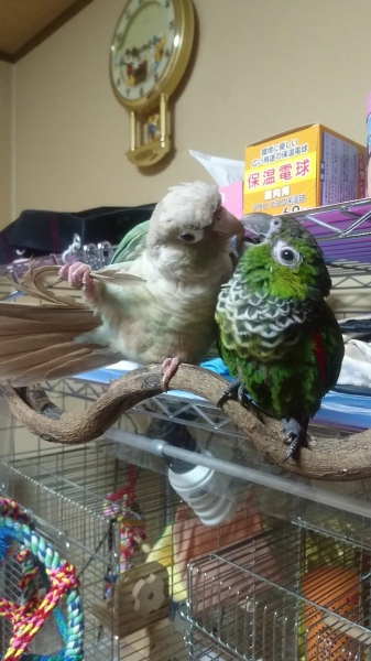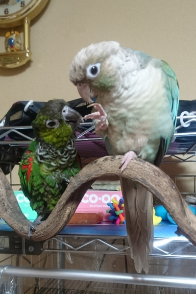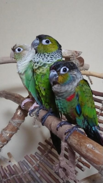 平成29年8月、2羽目イワウロコのKORONEちゃん(当時3ヶ月ベビー)をお迎えしました。平成30年9月、3羽目アカハラウロコのRIOちゃんを、冷和元年7月、4羽目ネズミガシラハネナガのAIちゃんをお迎えしました✨