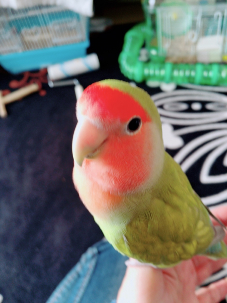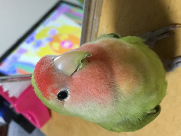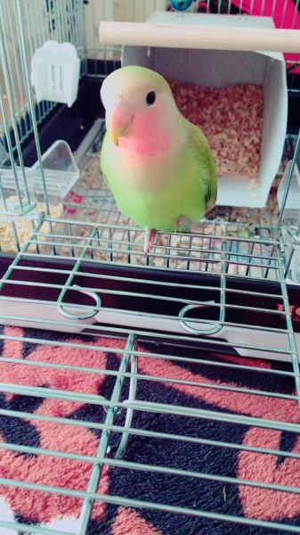 3ヶ月になるコザクラインコのちぇるを飼い始めて その可愛いさにメロメロです^ − ^