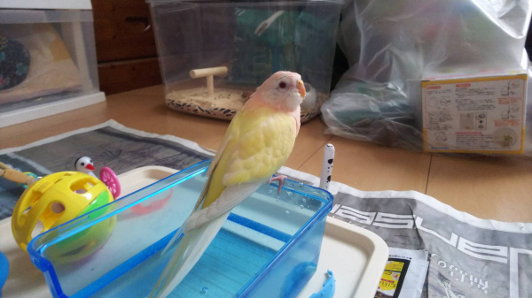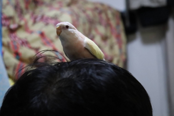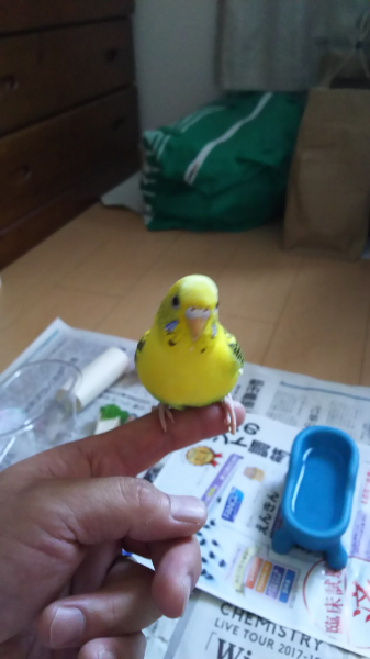 • 帰宅後の放鳥時は飛び回った後に30分以上指に載っています。