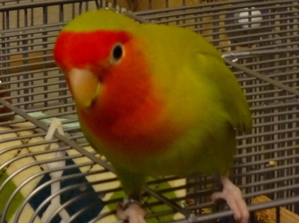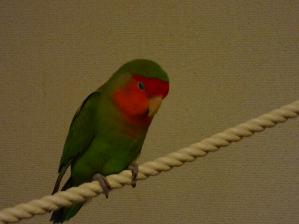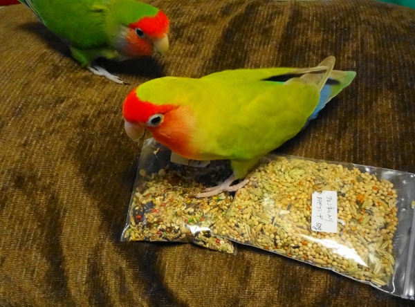 本鳥は大騒ぎ、肩にめがけて飛んでこられた飼い主も大騒ぎ・・・