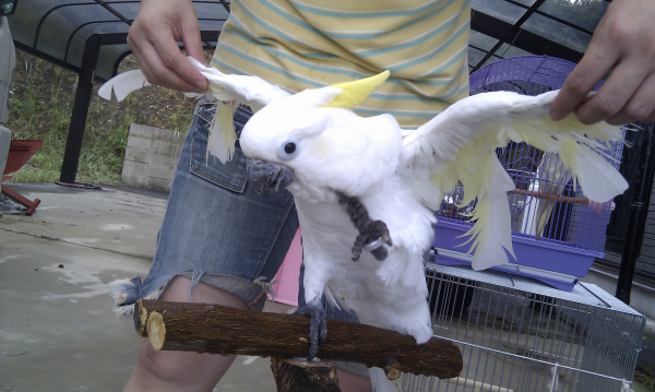 2011.09.24 18:04 ナナのママ 本日昼からお友達に教えてもらった「静かな公園」へナナを連れて散歩してきました。終始ビビりまくりのナナ。非常に可愛かったです。 色々ありましたがナナは私が知っている鳥さんたちより過酷な日々を送ってきたのだな・・・。と思い、いっぱいいっぱい遊んで可愛がり良い事をナナに教えて、「楽しいなぁ」とナナが感じてくれるように接してあげたいとあらためて思いました。