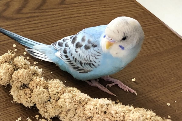 こんにちは。 水色のセキセイインコのアオと同居し始めました。よろしくお願いします。
