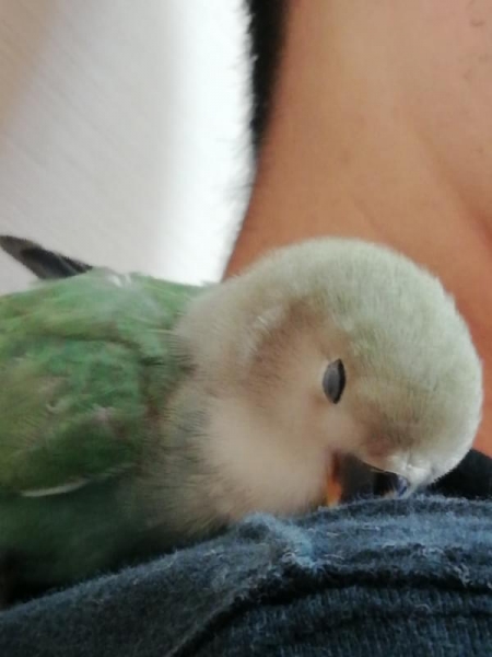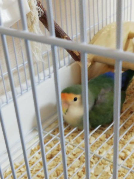 生後5週間のコザクラインコを飼い始めました。名前はミント。