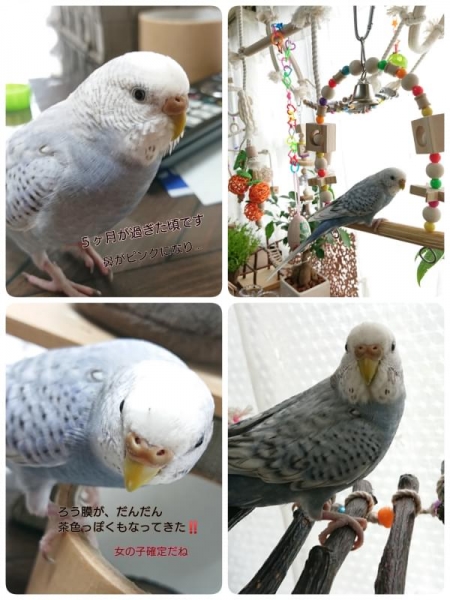- もうすぐ生後6ヶ月になるセキセイインコ♀です。おしゃべり好きの♂に出逢いたかったのですが、挿し餌から育てる為生後1ヶ月の子を迎えました。最近のお鼻回りを観察してると♀確定の様です(^_^;)が…結局、可愛がってるとどちらでも良いなぁ〜となりました(*^^*)体は、そんなに大きくないのですが噛む力は強くて…今は色んな物をくわえては投げ飛ばす事に必死です(>_<)そんな可愛い姿を見ながら、飼い主は日々インコのアスレチック場作りに専念中です(*´ω`*)