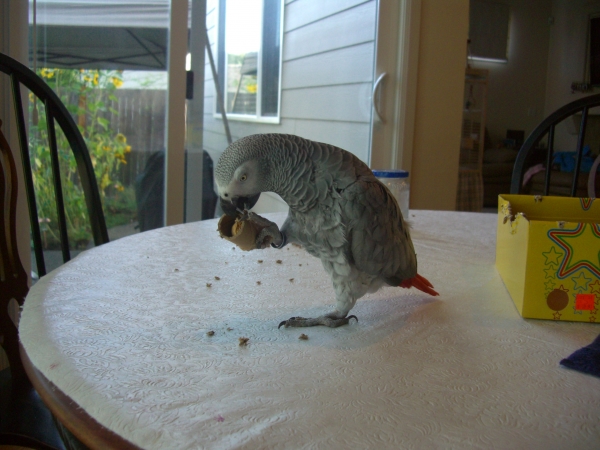 みなさん初めまして、CAGママと申します。ほとんど予備知識のないままになんとなくヨウムを飼いはじめ、出産、子育て、その上引っ越しまで重なり、マーリンの世話まで手の行き届かない時期もあり毛引き鳥になること数しれず。ようやく8年目にして『いい感じ』の関係ができつつあるようです。最近になってマーリンと「クリッカートレーニング」を始めました。ブログでトレーニングを紹介してますので興味のある方はどうぞ。