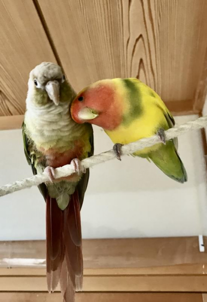 セキセイ8羽、オカメ2羽、コザクラ5羽、ボタン2羽、ウロコ2羽、サザナミ1羽の総勢20羽の鳥たちとにぎやかに暮らしています。