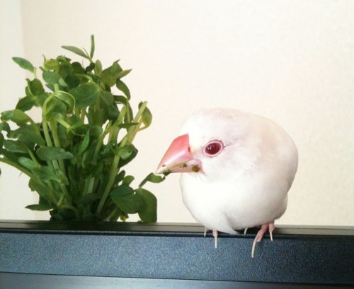 23gのちびっこイノ文鳥といっしょ。