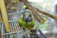 1羽のメスのネズミガシラハネナガと暮らしています。